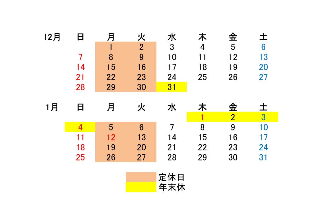 2025年12月の営業と2026年1月の営業日のお知らせです。